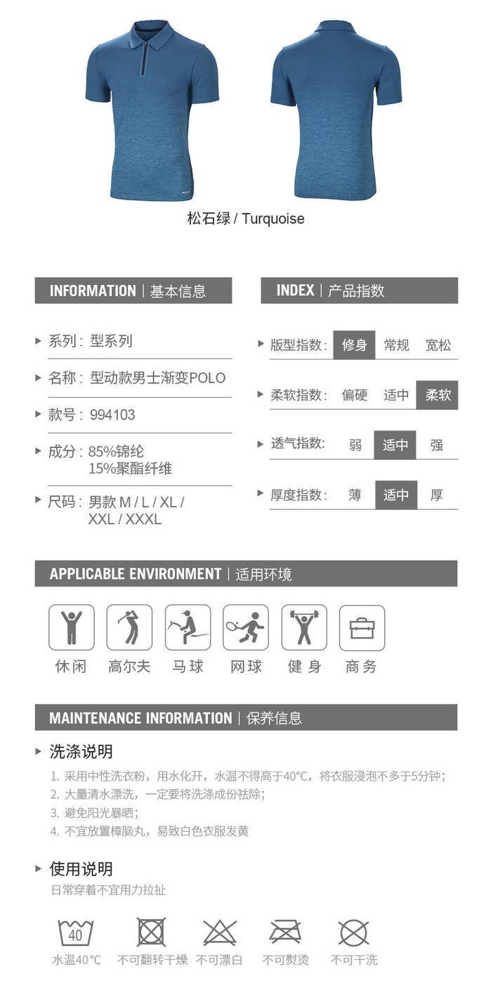 UTO悠途 短袖t恤男装运动上衣2021春夏季新款内搭Polo衫半袖透气速干休闲跑步健身服 松石绿